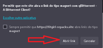 Seu navegador provavelmente pedirá permissão, apenas clique em Abrir.